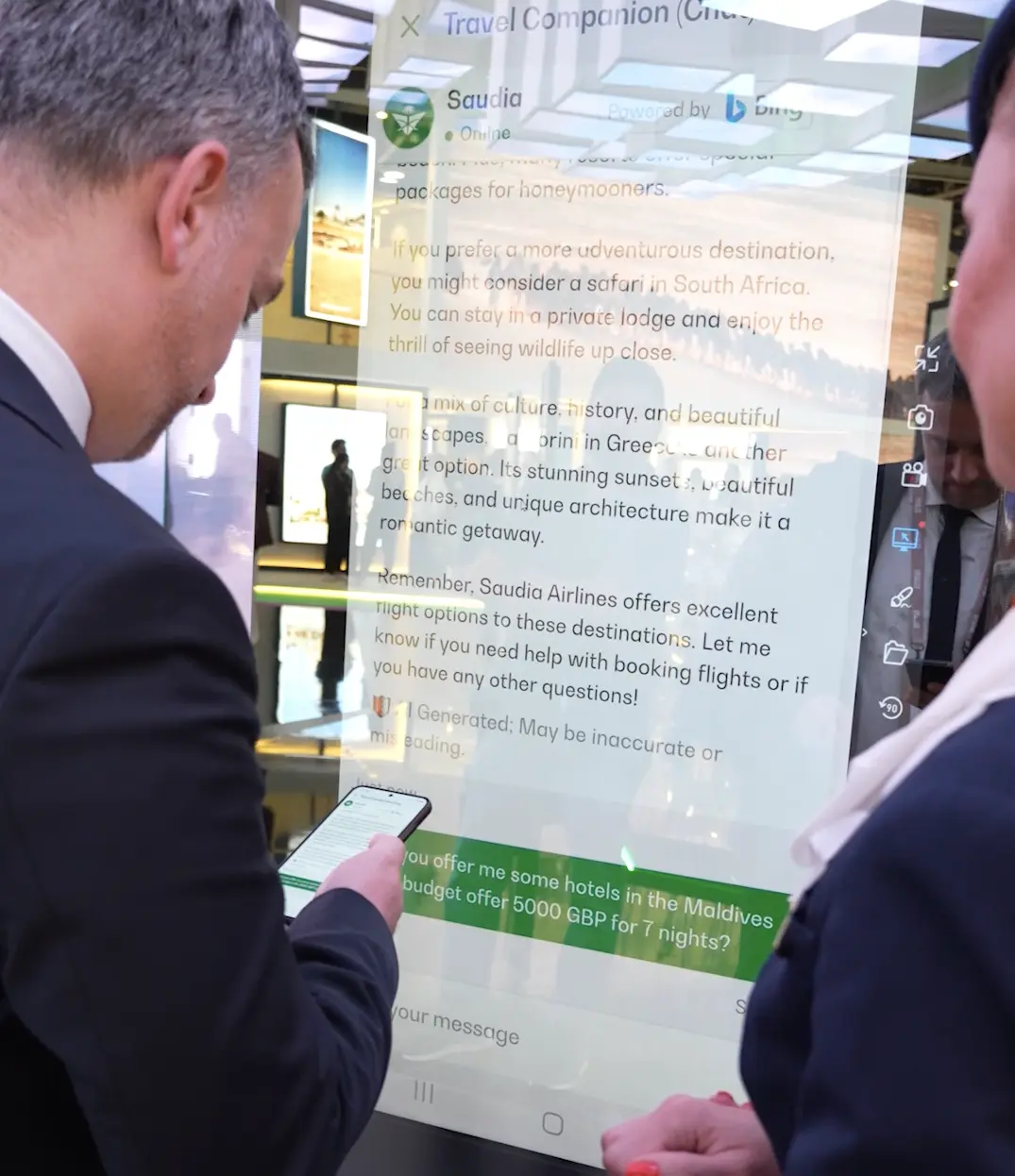 At the Arabian Travel Market, we unveiled our cutting-edge Interactive Mirror Totem. This innovative display captivated attendees with its sleek design and advanced interactive capabilities, offering a unique and engaging experience. The Mirror Totem seamlessly combines functionality and aesthetics, providing a dynamic platform for personalized content and enhanced customer interaction. Our showcase highlighted the potential of this technology to revolutionize user experiences in the travel industry.